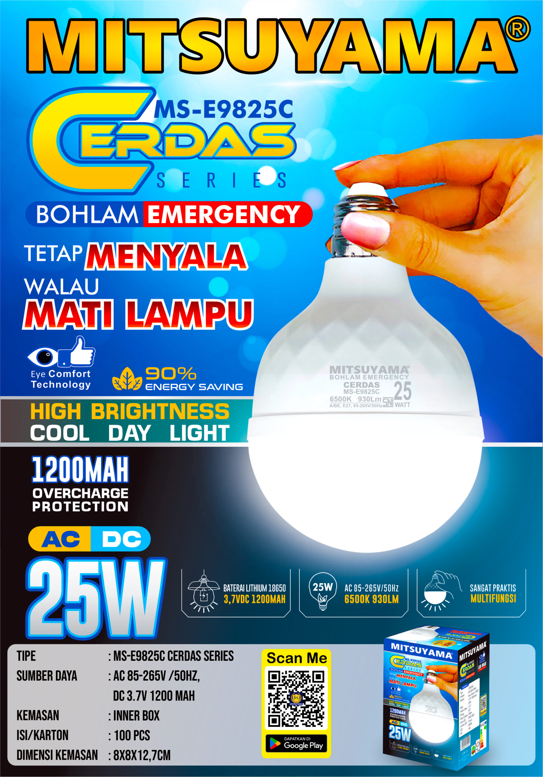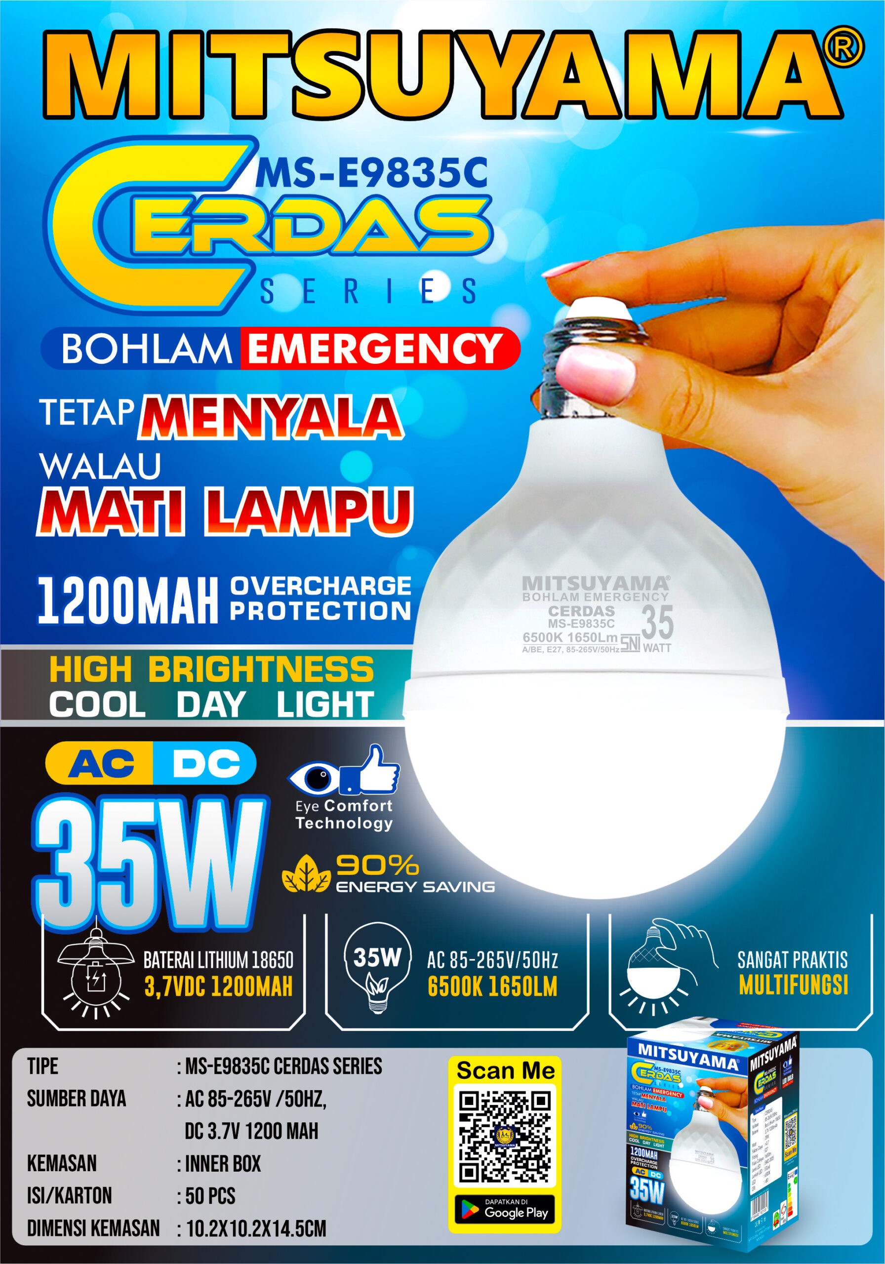 Bohlam Emergency AC DC Mitsuyama series Cerdas