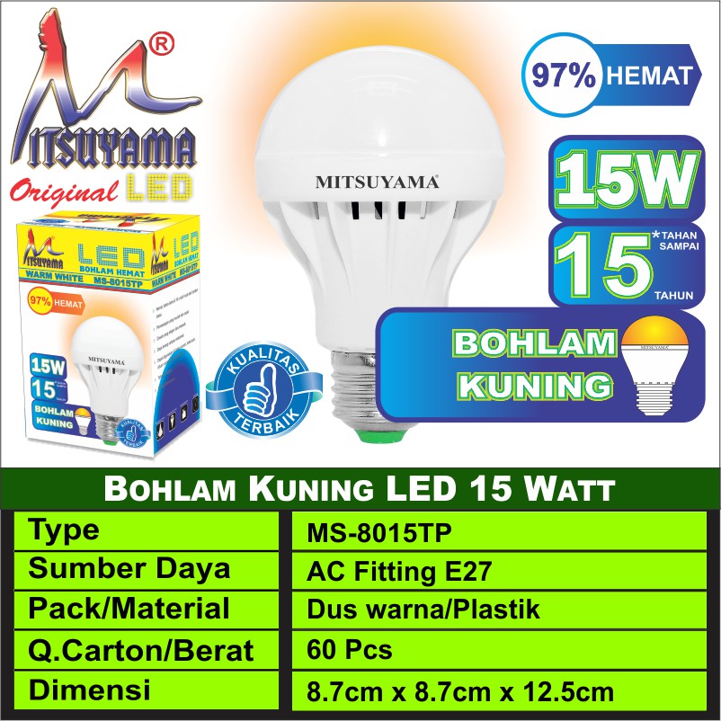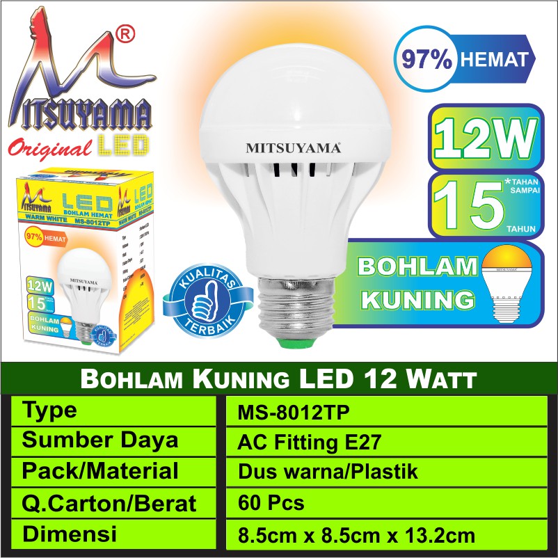 Bohlam Kuning 12-15 Watt Mitsuyama MS-8012TP/MS-8015TP