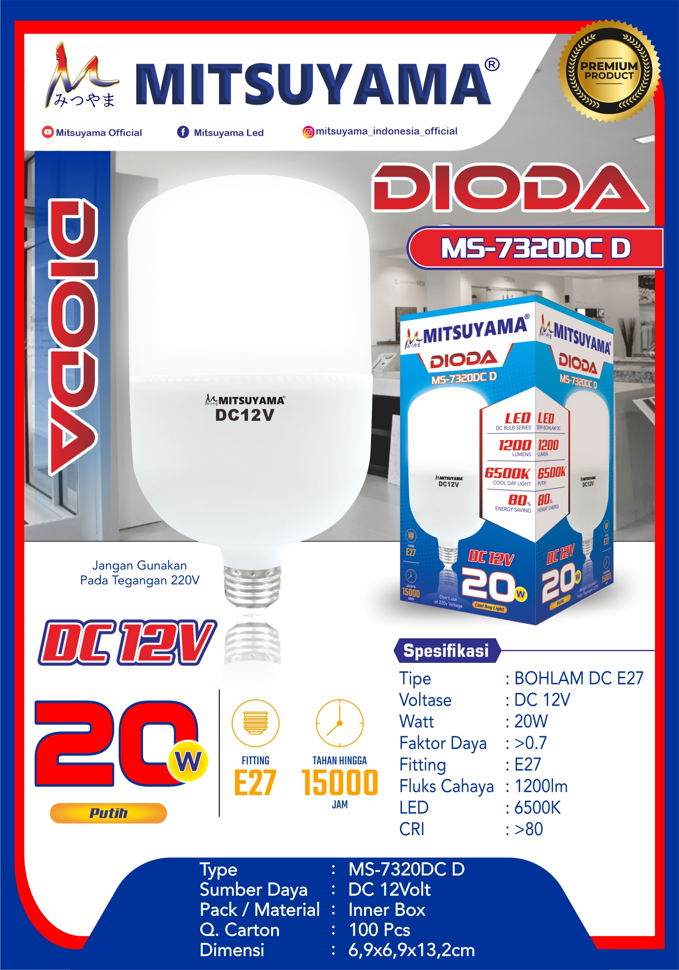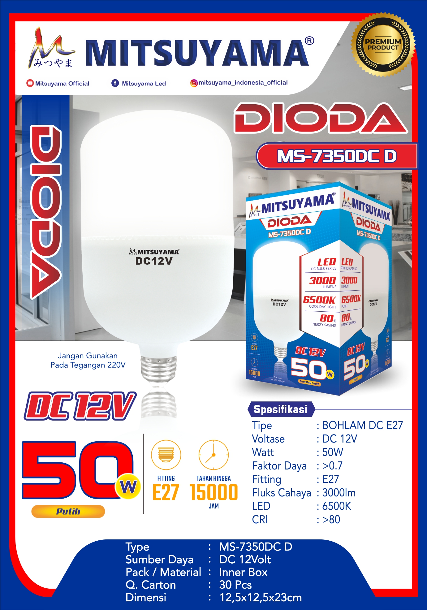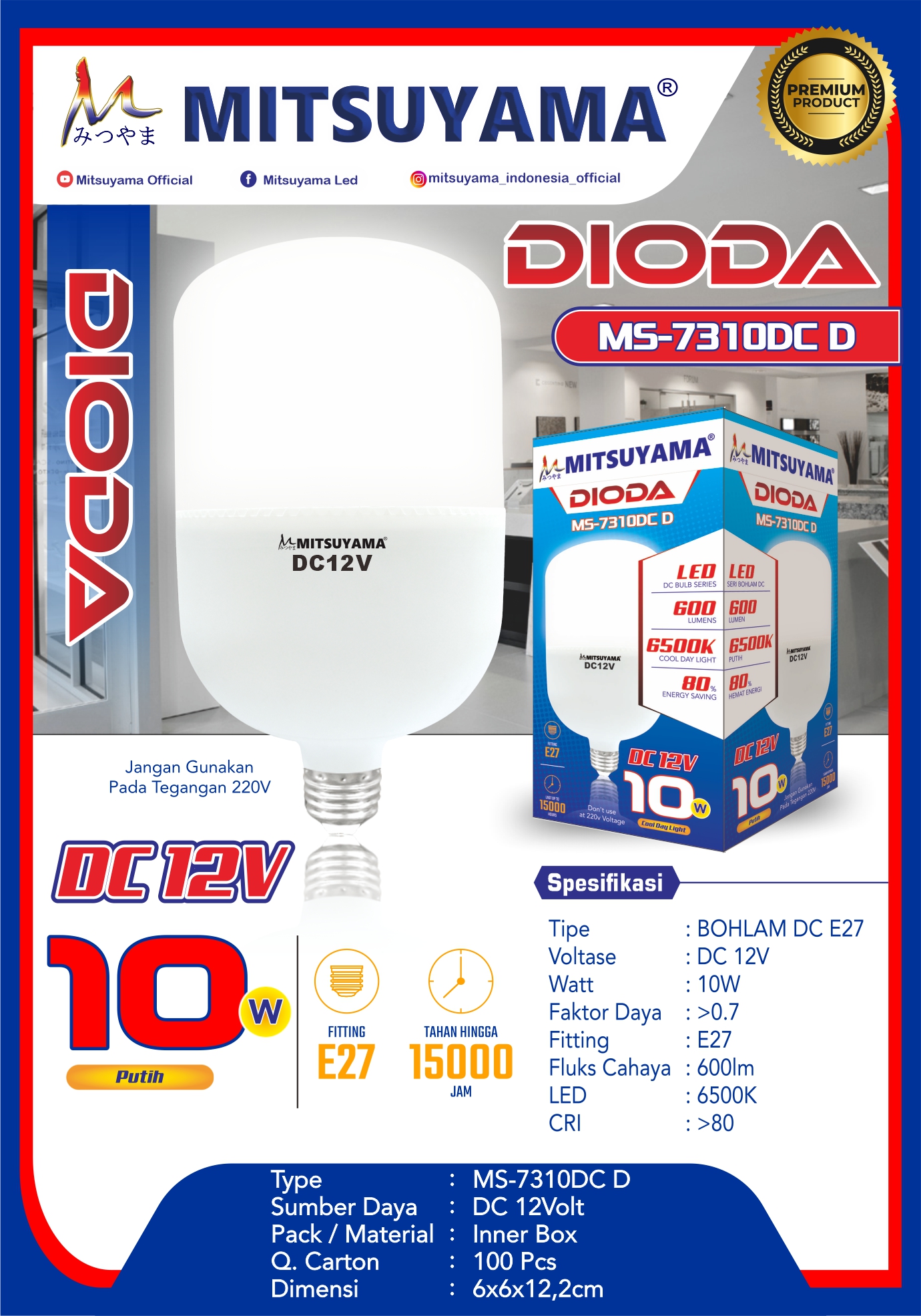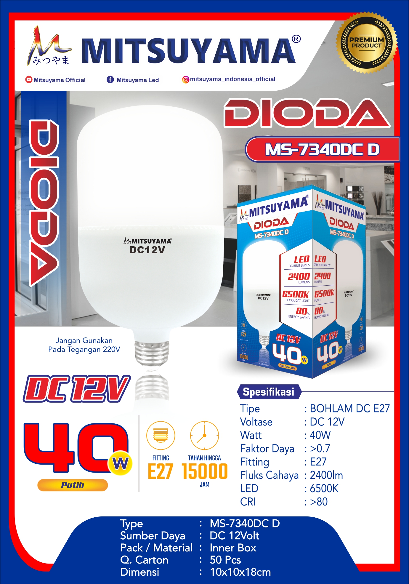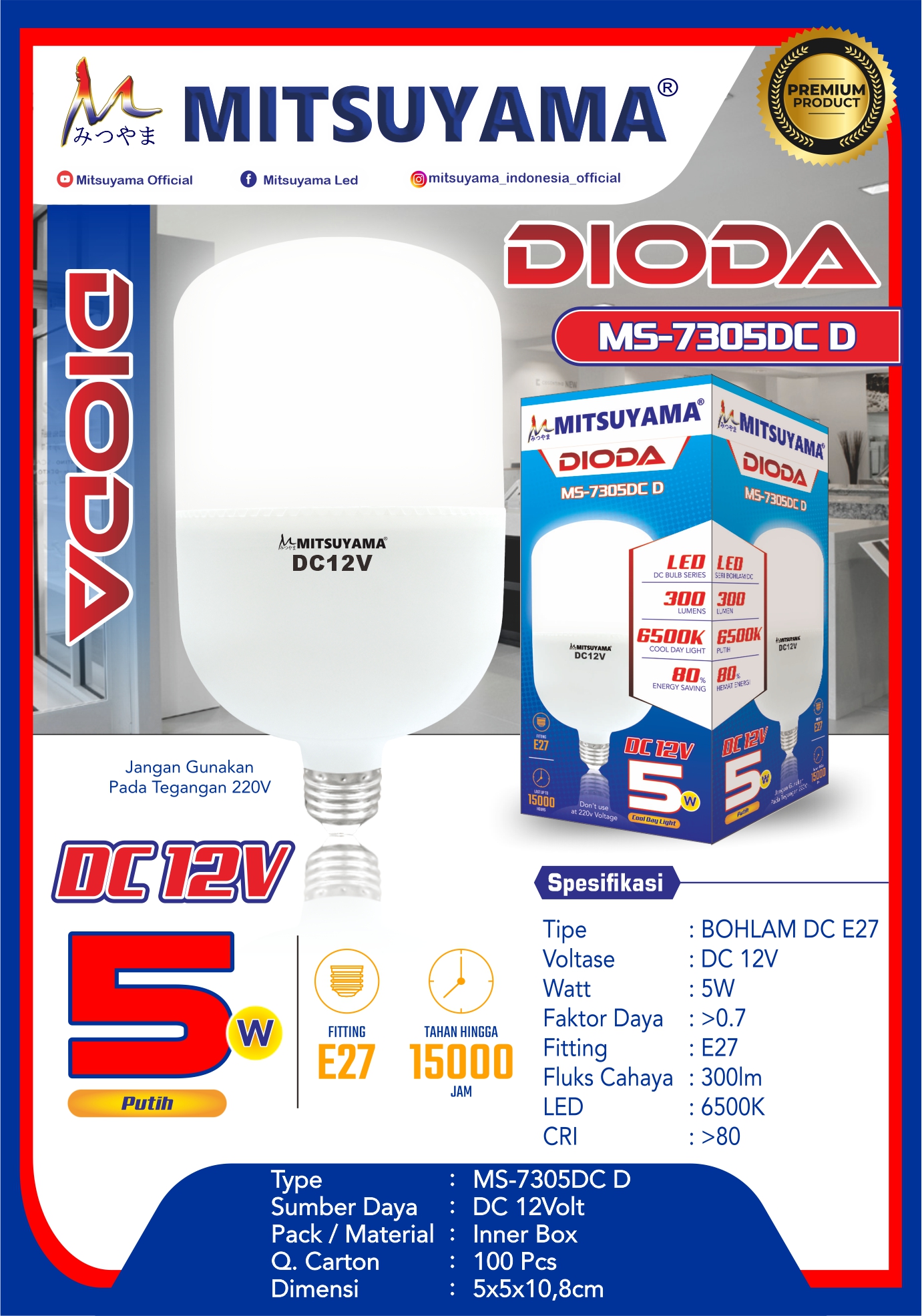 Bohlam Mitsuyama DC E27 MS-73XXDCD Dioda 5-40 Watt Putih