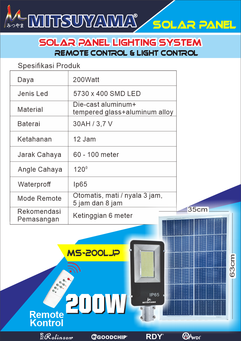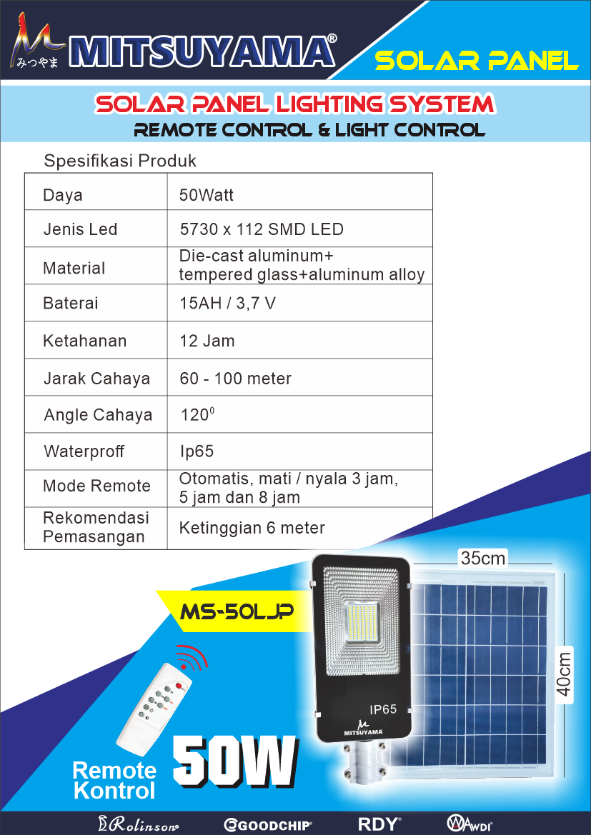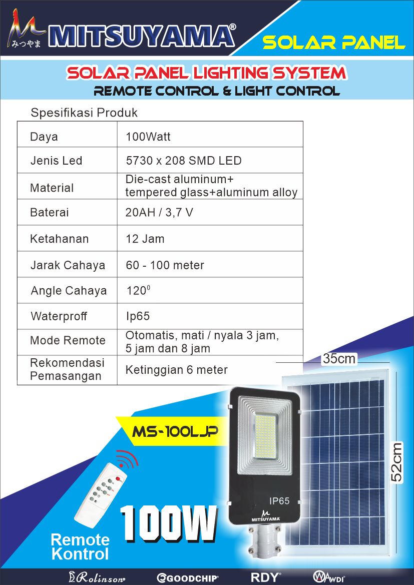 Lampu Jalan 100Watt Tenaga Surya Mitsuyama Series LJP
